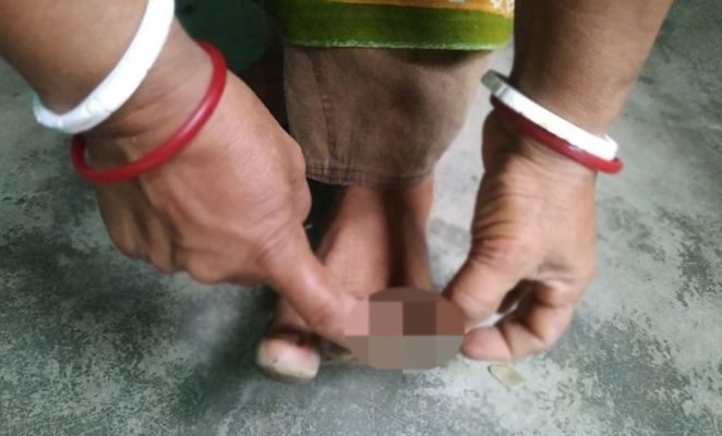 হাকালুকি হাওরপারের তালিমপুর ইউনিয়নের পশ্চিম গগড়া গ্রামের বাসিন্দা অপর্ণা রানী দাসের বাড়ির আঙিনা আর রান্নাঘরে বন্যার পানি উঠেছে। পানি মাড়িয়ে তিনি বাড়ির কাজকর্ম করেছেন। এখন তার পায়ের আঙুলের ফাঁকে ফাঁকে ঘা হতে শুরু করেছে।