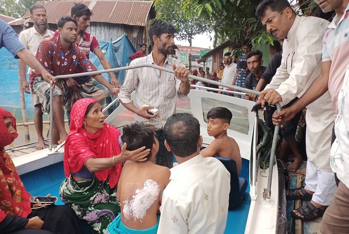 খোঁজ নিয়ে জানা যায়, উপজেলার দক্ষিণ বড়দল পুরান হাঠি রুহুল আমিন এর ধান ভাঙানোর মিলে জিনাস ও পারভেজসহ কয়েকজন মিলে হাতে বেয়ে নৌকা নিয়ে গো খাদ্য আনছিলো। এক পর্যায়ে বিকেল সাড়ে পাঁচ টায় সময় দিকে মিলে বিদ্যুৎতের তারে লেগে গিয়ে বিদ্যুৎস্পৃষ্ট হয়ে গুরুতর আহত হয়। সাথে সাথে স্থানীয় এলাকাবাসীর তাদের উদ্ধার করে তাহিরপুর উপজেলা স্বাস্থ্য কমপ্লেক্স নিয়ে গেলে কর্তব্যরত ডাক্তার তাদের সুনামগঞ্জ সদর হাসপাতালে পাঠান।