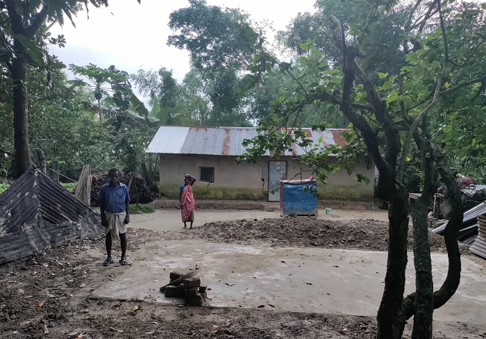 ১৮ জুনের টানা বৃষ্টিতে টিলা ধসে পড়ে সুক্রু দাসের ঘরে। এতে ঘর গুঁড়িয়ে যাওয়ার পাশাপাশি হাত ভেঙেছে তার। ঘর হারানো শুক্রু এখন মাকে নিয়ে আশ্রয় নিয়েছেন পার্শ্ববর্তী মামার বাড়িতে।