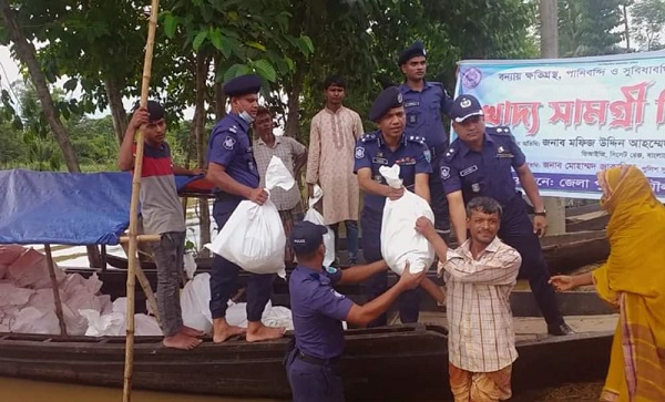 বুধবার বাংলাদেশ পুলিশের ইন্সপেক্টর জেনারেল (আইজিপি) ড. বেনজীর আহমেদ বিপিএম (বার)-এর পক্ষ থেকে পাঠানো ত্রাণ সামগ্রী নিয়ে উপজেলার বিভিন্ন আশ্রয়কেন্দ্রে বিতরণ করেন।