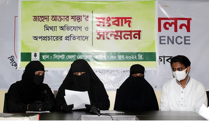 নিজের মেয়ের বিরুদ্ধে মিথ্যাচারের অভিযোগ তুলেছেন এক মা। বৃহস্পতিবার (৩০ জুন) বেলা আড়াইটায় সিলেট জেলা প্রেসক্লাবে সংবাদ সম্মেলন ডেকে নিজেরই মেয়ে জাহেদা আক্তার শান্তার মিথ্যাচারের অভিযোগ করেন রাজধানী ঢাকার সবুজবাগ এলাকার বাসিন্দা ঝর্ণা বেগম। ঝর্ণা বেগমের পক্ষে সংবাদ সম্মেলনে লিখিত বক্তব্য পাঠ করেন শান্তার ছোট বোন আয়েশা আক্তার।