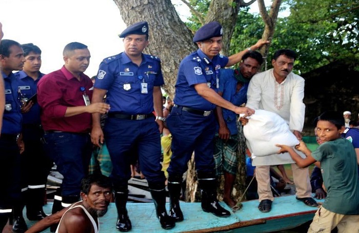 ডিআইজি মফিজ উদ্দিন সংশ্লিষ্ট এলাকার বানভাসি দুই শতাধিক মানুষের মধ্যে ত্রাণ বিতরণ করেন।