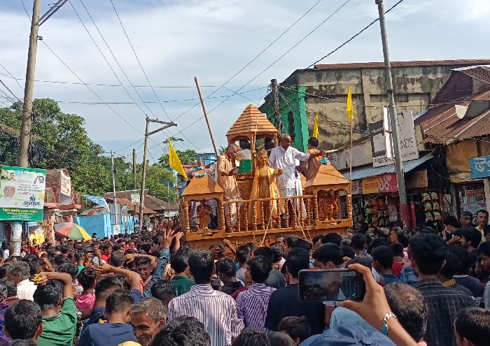 রথযাত্রা উপলক্ষে সকাল থেকেই সনাতন ধর্ম্বামলর্ম্বী লোকজন স্থানীয় গোবিন্দ জিউর আখড়ায় সমবেত হন। বিকাল সাড়ে ৪ টায় গোবিন্দ জিউর আখড়া প্রাঙ্গণ থেকে হাজারো ভক্তবৃন্দের উপস্থিতে রথ বের হয়ে পশ্চিম বাজার এসে তা পুনরায় গোবিন্দ জিউর আখড়ায় গিয়ে শেষ হয়। পরে গোবিন্দ জিউর আখড়ায় সকল ভক্তবৃন্দের মাঝে প্রসাদ বিতরণ করে শেষ হয়।
