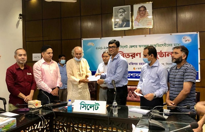 সিলেট জেলা প্রশাসনের ২০২১-২২ অর্থবছরের অসচ্ছল সংস্কৃতিকর্মীদের মাঝে চেক বিতরণ করা হয়েছে।