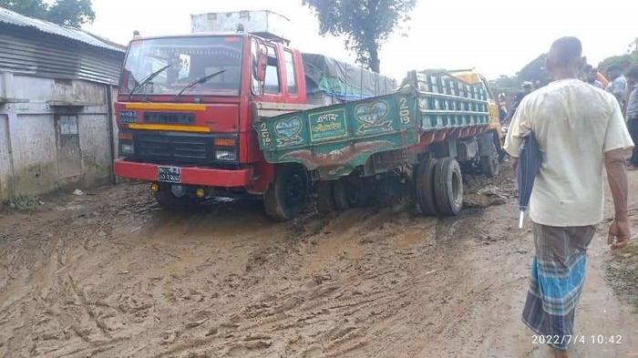 সরেজমিনে সোমবার দেখা যায়, বিকল্প রাস্তায় দুইটি ট্রাক কাদায় পড়ে গেলে উভয় পাশে যান চলাচল বন্ধ হয়ে যায়। দীর্ঘসময় রাস্তা বন্ধ থাকার পর বিকালে সাবেক ভাইস চেয়ারম্যান কিশোর রায় চৌধুরী মনি, আওয়ামী লীগ নেতা জাহাঙ্গীর আলম, সাংবাদিক কল্যাণ প্রসূণ চম্পু ঠিকাদারি প্রতিষ্ঠানের লোকজনকে খবর দিলে তারা এসে কিছু বালি ফেলে দিয়ে যায়।
