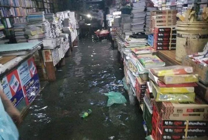 শনিবার রাতের বৃষ্টিতে পানি ঢুকে পড়ে সিলেটের বইয়ের বাজার হিসেবে পরিচিত জিন্দাবাজারের রাজা ম্যাবশনেও।