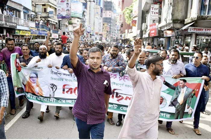 বুধবার (২০ জুলাই) বিকেলে বিক্ষোভ মিছিলটি নগরীর পূর্ব জিন্দাবাজার থেকে শুরু হয়ে কোর্ট পয়েন্টে গিয়ে বিক্ষোভ সমাবেশে করে। মিছিল পরবর্তী বিক্ষোভ সমাবেশে সভাপতিত্ব করেন সিলেট মহানগর স্বেচ্ছাসেবক দলের আহবায়ক আব্দুল ওয়াহিদ সুহেল।
