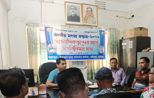 উপজেলা মৎস্য কর্মকর্তা সারোয়ার হোসেন সংবাদ সম্মেলনে মৎস্য সপ্তাহের বিস্তারিত কর্মসূচিসমূহ সাংবাদিকদের কাছে তুলে ধরেন।