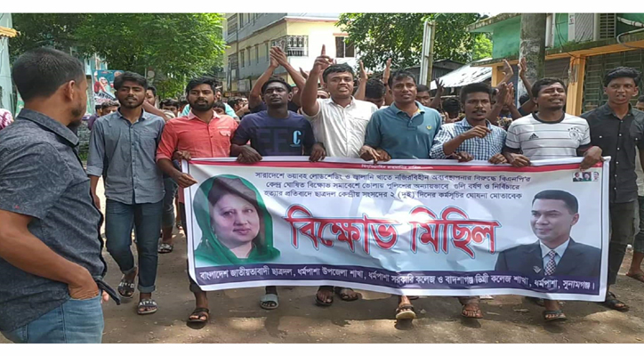 কেন্দ্রীয় কর্মসূচির অংশ হিসেবে যৌথভাবে বিক্ষোভ মিছিল ও প্রতিবাদ সমাবেশ করেছে ধর্মপাশা উপজেলা ছাত্রদল এবং ধর্মপাশা সরকারি কলেজ ছাত্রদল এবং বাদশাগঞ্জ ডিগ্রি কলেজ ছাত্রদল।