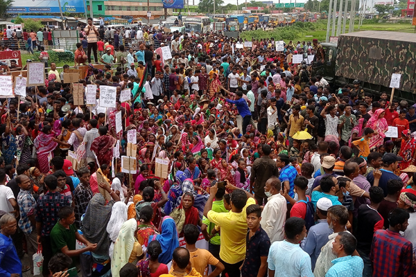 এ সময় মহাসড়কে হাজার হাজার শ্রমিক অবস্থান নিয়ে তাদের দাবীর পক্ষে শ্লোগান দিতে থাকে। যার ফলে মহাসড়কের তিন পাশে শত শত যানবাহন আটকা পরে। সৃষ্টি হয় প্রায় দশ কিলোমিটার দীর্ঘ তীব্র যানজটের।