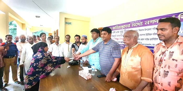 বন্যায় ক্ষতিগ্রস্ত সিলেটের বিশ্বনাথ উপজেলার রামপাশা ইউনিয়নের ১০০ বন্যার্ত পরিবারের মধ্যে এক হাজার টাকা করে নগদ অর্থ প্রদান করা হয়েছে। ‘ওয়ান পাউন্ড হসপিটালের উদ্যোগে মঙ্গলবার (২৩ আগস্ট) বিকেল ৫টায় রামপাশা ইউনিয়ন পরিষদ প্রাঙ্গণে আনুষ্ঠানিকভাবে নগদ এই অর্থ প্রদান করা হয়। অনুষ্ঠানে প্রধান অতিথি ছিলেন সিলেট জেলা আওয়ামী লীগের উপদেষ্ঠা ও বিশ্বনাথ উপজেলা চেয়ারম্যান এসএম নুুনু মিয়া।