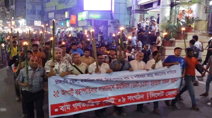 হরতালের সমর্থনে বাম গণতান্ত্রিক জোট ও ৯ সংগঠন সিলেট জেলা শাখার উদ্যোগে মশাল মিছিল পরবর্তী সমাবেশে নেতৃবৃন্দ এই আহবান জানান।