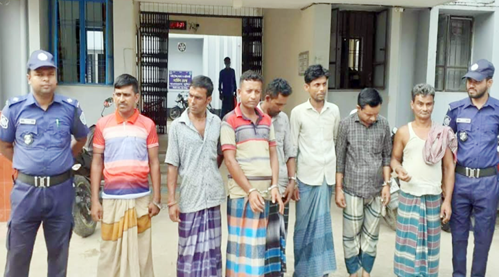 গ্রেপ্তারকৃতরা হলেন- উপজেলার চরনারচর ইউনিয়ন পরিষদের ৫ নম্বর ওয়ার্ডের সদস্য গোপালপুর গ্রামের মহেশ চন্দ্র দাস (৩৫), একই গ্রামের মৃত রাজেন্দ্র দাসের ছেলে রনজিত দাস (২৬), লৌলারচর গ্রামের মৃত নরেশ ভূইয়ার ছেলে সুধিন ভূইয়া (৩৫), মৃত হাছন তালুকদারের ছেলে রাসেল তালুকদার (৩৫), খালেক মিয়ার ছেলে মঞ্জু মিয়া (৩০), মৃত আব্দুল হামিদ মিয়ার ছেলে আনোয়ার মিয়া (৩০), শাল্লা উপজেলার হবিবপুর ইউনিয়নের কাশিপুর গ্রামের আম্বর আলী মিয়ার ছেলে মহিদুল মিয়া (৪০)।