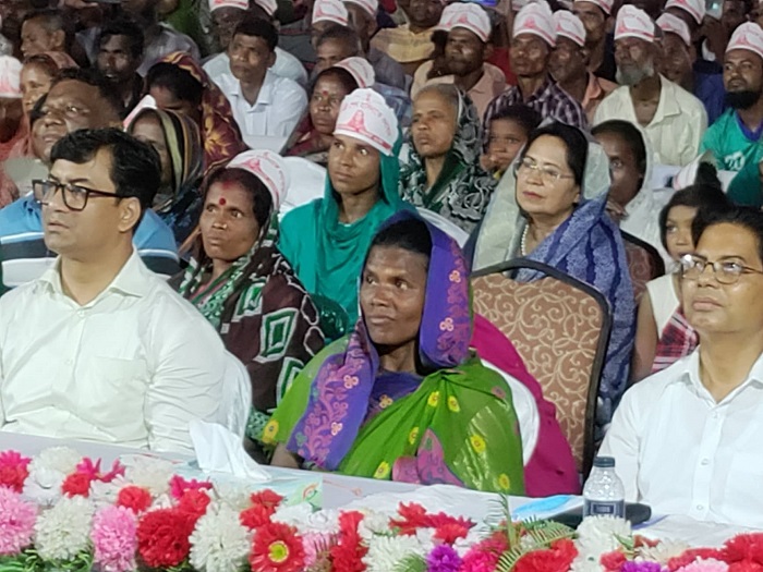 ‘ভোটের অধিকার পেয়েছে, নাগরিকত্ব পেয়েছে, কিন্তু তারা ভূমিহীন থাকবে, এটা তো হতে পারে না। সকলের জন্য বাসস্থানের ব্যবস্থা ইনশাআল্লাহ আমি করেছি। আমার আর যত নাগরিক তাদের সাথে একই সঙ্গে … কারণ হিজড়া, বেদে অন্য যারা ভাসমান প্রত্যেককে আমি আলাদা করে ঘর করে দিচ্ছি, তাদের জীবন-জীবিকার ব্যবস্থা করে দিচ্ছি। এখানে আমার চা শ্রমিকরা অবহেলিত থাকবে, এটা কখনও হতে পারে না।’