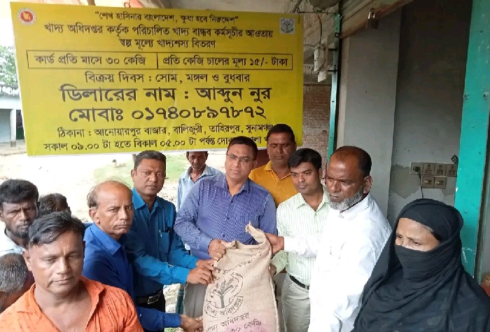 সুনামগঞ্জের তাহিরপুর উপজেলার খাদ্য বান্ধব কর্মসুচির আওতায় ১৫ টাকা কেজি ধরে চাল বিক্রির কার্যক্রম শুরু করা হয়েছে।