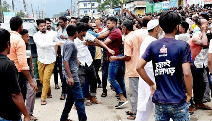 এসময় অনেককেই দোকানপাট ফেলে নিরাপদ আশ্রয়ে চলে যেতে দেখা গেছে। যানবাহনের ছুটাছুটি ও দোকানপাটের সাটার লাগানোর শব্দে গোটা শহরে আতংক ছড়িয়ে পড়ে। স্থানীয় পৌর কাউন্সিলর জসিম উদ্দিন সুমেন সংঘর্ষ নিয়ন্ত্রণ করার চেষ্টা করতে দেখা যায়। তবে সংঘর্ষ বেশিক্ষণ স্থায়ী না হওয়ায় সমাবেশ চলছিল ধারাবাহিকভাবেই।