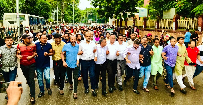 বুুধবার বিকেল ৫টার দিকে যুবদল নেতা মকসুদকে গ্রেফতারের পর র্যাব হেফাজত থেকে পুলিশের কাছে হস্তান্তর করার পর নগরীর কোর্ট পয়েন্টে থেকে তাৎক্ষনিক বিক্ষোভ মিছিল শুরু হয়েছে সুরমা টাওয়ারের সামনে সংক্ষিপ্ত সমাবেশ অনুষ্ঠিত হয়।