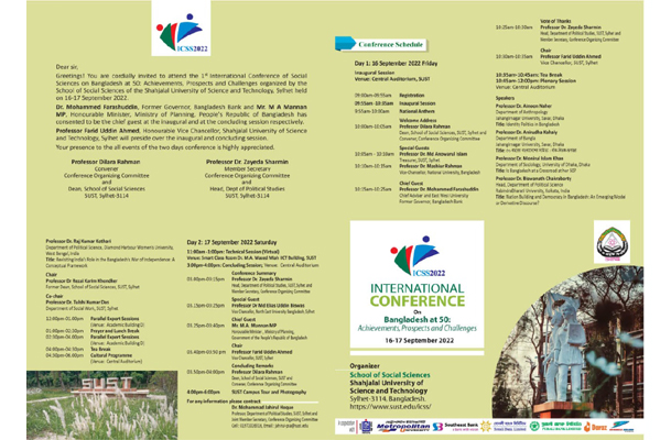 শাহজালাল বিজ্ঞান ও প্রযুক্তি বিশ্ববিদ্যালয়ে (শাবিপ্রবি) সামাজিক বিজ্ঞান অনুষদের উদ্যোগে প্রথমবারের মত আন্তর্জাতিক গবেষণা সম্মেলন অনুষ্ঠিত হতে যাচ্ছে।