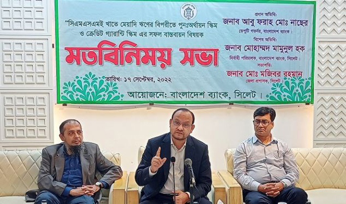 শনিবার সিলেট বিভাগীয় ব্যবসায়ী সংগঠনের নেতাদের সঙ্গে মতবিনিময় সভায় তিনি এসব কথা বলেন। সিএমএসএমই খাতে মেয়াদি ঋণের বিপরীতে পুনঃঅর্থায়ন স্কিম ও ক্রেডিট গ্যারান্টি স্কিমের সফল বাস্তবায়ন বিষয়ক মতবিনিময় সভায় তিনি প্রধান অতিথি ছিলেন।