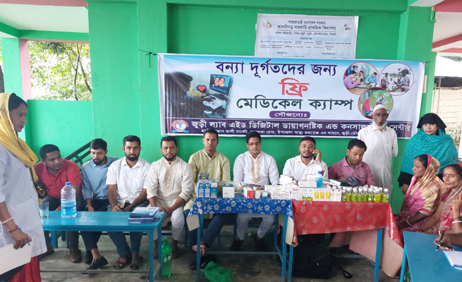 বন্যা পরবর্তী মানুষের সহযোগিতার জন্যে বিনামূল্যে চিকিৎসা সেবা দিয়ে জুড়ী ল্যাব এইড অ্যান্ড ডায়াগনস্টিক কনসালটেন্ট সেন্টার।