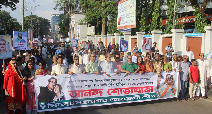 সর্বকালের সর্বশ্রেষ্ঠ বাঙালি, স্বাধীন বাংলাদেশের মহান স্থপতি জাতির পিতা বঙ্গবন্ধু শেখ মুজিবুর রহমান‘র কন্যা, আওয়ামী লীগের সভাপতি প্রধানমন্ত্রী শেখ হাসিনার ৭৫তম জন্মবার্ষিকীতে বিশাল আনন্দ র্যালি বের করে সিলেট মহানগর আওয়ামী লীগ।