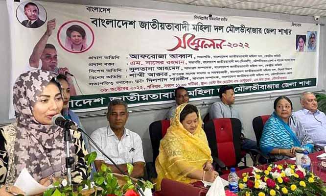 শনিবার দুপুরে শহরের অভিজাত রেস্টুরেন্টে মৌলভীবাজার জেলা মহিলা দলের দ্বি-বার্ষিক সম্মেলন প্রধান অতিথির বক্তব্যে তিনি এসব কথা বলেন।