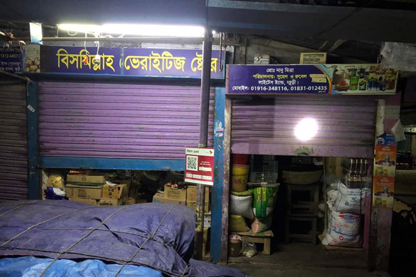 দোকানগুলো হল মেসার্স বিসমিল্লাহ ভেরাইটিজ স্টোর, লাভলী স্টোর, শামীম ট্রাভেলস, সুভাষ মিষ্টি ঘর, এমএ নূর রড সিমেন্টের দোকান ও ভবানীগন্জ বাজার জামে মসজিদের দানবাক্স।