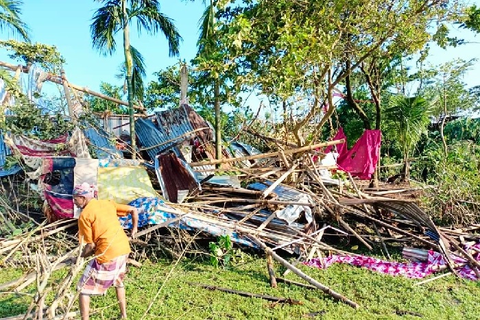 পরিবারে ১১ জন মানুষ। মা-বাবা, বড়ভাই-ভাবী, স্ত্রী সন্তান নিয়ে টিনশেডের বাড়িতে কোনো রকমে চলছিলো আমাদের। প্রতিদিনের মতো গত রাতেও খাওয়া দাওয়া করে ঘুমিয়েছিলাম। রাত ১২টার দিকে বৃষ্টি আসে, সাথে প্রচণ্ড গতিতে ঝড়ো হাওয়া। ৫ মিনিটেই সব শেষ। চালের টিন পার্শ্ববর্তী গ্রাম শ্রীনাতপুরে বৈদ্যুতিক খুঁটির উপরে পাওয়া গেছে। পোশাক-পরিচ্ছেদ কোথায় উড়িয়ে নিয়ে গেছে তা আর পাওয়া যায় নি। কাঁথা-কম্বল পাওয়া যাচ্ছে পাশের নদীতে। আমার প্রায় ৩লক্ষ টাকার মতো ক্ষতি হয়েছে। আমার আর কিছুই রইলো না। বড় বড় গাছ উপড়ে দিয়েছে। শুধু আমার নয়, আমাদের গ্রাম ও পার্শ্ববর্তী গ্রাম শ্রীনাতপুর, দরগাপুর গ্রামেরও ব্যাপক ক্ষতি হয়েছে।