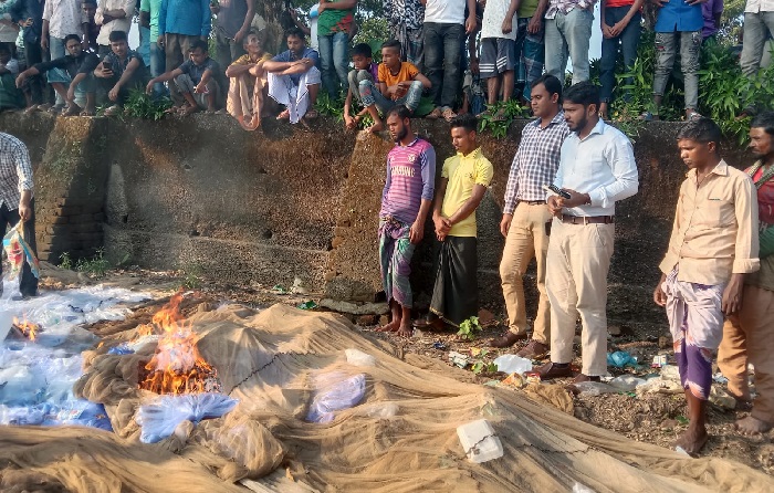 জানা যায়, উপজেলার টাংগুয়ার হাওরে নিষিদ্ধ বেড়জাল দিয়ে মাছ ধরছে গোপন সংবাদের ভিত্তিত্বে অভিযান পরিচালনা করেন উপজেলা সহকারী কমিশন (ভূমি) আসাদুজ্জামান রনি নিষিদ্ধ তিনটি বেড় জাল (১২শ হাত লম্ব) জব্দ করেন। এর পরে দুপুরে তাহিরপুর সদর বাজারে অভিযান পরিচালনা করে একটি দোকানে ১৭০ পিস কারেন্ট জাল জব্দ করেন। পরে মোবাইল কোর্ট পরিচালনা করে নিষিদ্ধ জালগুলো প্রকাশ্যে আগুনে পুরিয়ে ফেলেন।