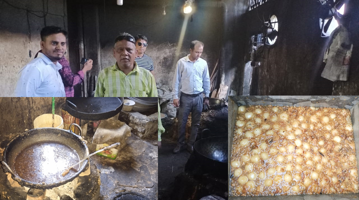ভ্রাম্যমাণ আদালতের অভিযানকালে ঢাকা মিষ্টি ঘরের কারখানায় পোড়া তেল, নষ্ট শিরা ও পচা-বাসি মিষ্টি পাওয়া যায়।
