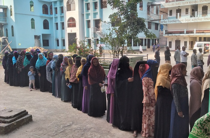 বুধবার অনুষ্ঠিত বিশ্বনাথ পৌরসভা নির্বাচনের একটি কেন্দ্রে ভোটারদের ভিড়