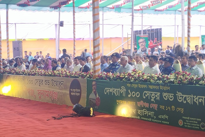সকালে (৭ নবেম্বর) পরিকল্পনামন্ত্রী এম এ মান্নান সেতুর পাড়ে রানীগঞ্জ উচ্চবিদ্যালয় মাঠে উপস্থিত থেকে প্রধানমন্ত্রীর ভার্চ্যুয়াল অনুষ্ঠান উপভোগ করেন। এ সময় জেলার কয়েক হাজার মানুষ সেখানে উপস্থিত ছিলেন। অনুষ্ঠানে রাধারমণ দত্তের বিখ্যাত ধামাইল গান পরিবেশন করেন স্থানীয় শিল্পীরা।