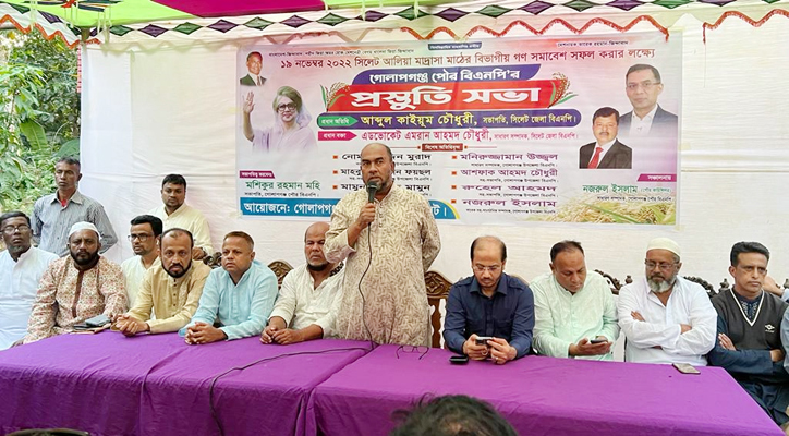 আগামী ১৯ নভেম্বর বিএনপির সিলেট বিভাগীয় গণসমাবেশ সফল করতে শুক্রবার বিকেলে গোলাপগঞ্জ পৌর বিএনপির উদ্যোগে আয়োজিত প্রস্তুতি সভায় প্রধান অতিথির বক্তব্যে তিনি এসব কথা বলেন।