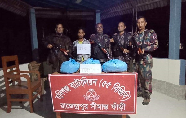 সোমবার সন্ধ্যা সাড়ে ৭ ঘটিকায় উপজেলার শাহজাহানপুর ইউনিয়নের সীমান্তবর্তী ভান্ডুরুয়া এলাকায় রাজেন্দ্রপুর বিওপি ক্যাম্পের নায়েক সুবেদার মো. তারা মিয়ার নেতৃত্বে বিজিবির একটি টহল দল গোপন সংবাদের ভিত্তিতে অভিযান চালিয়ে ৬ কেজি ভারতীয় গাঁজাসহ আশরাফুল ইসলাম (২০) নামে ওই যুবককে আটক করে।