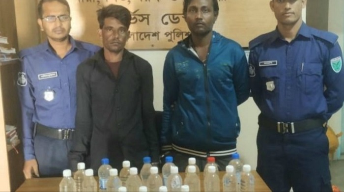 সুনামগঞ্জের জগন্নাথপুরে ১০ লিটার দেশীয় তৈরি চোলাই মদসহ দুই মাদক ব্যবসায়ীকে গ্রেপ্তার করেছে পুলিশ।