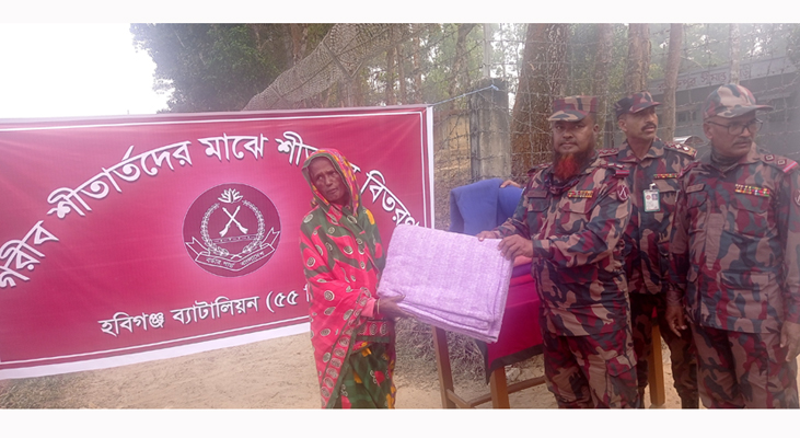 মহান বিজয় দিবসের ৫১তম বার্ষিকীতে হবিগঞ্জের মাধবপুর উপজেলার বহরা ও চৌমুহনী ইউনিয়নের সীমান্তবর্তী এলাকার ৫০ জন দুস্থ মানুষের মাঝে শীতবস্ত্র বিতরণ করেছে বর্ডার গার্ড বাংলাদেশ (বিজিবি) হবিগঞ্জ ব্যাটালিয়ন।