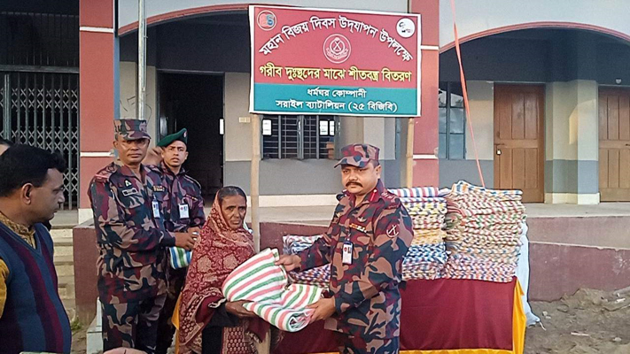 মহান বিজয় দিবস উপলক্ষে হবিগঞ্জের মাধবপুরে গরীব দুস্থদের মাঝে শীতবস্ত্র বিতরণ করেছে বর্ডার গার্ড বাংলাদেশ (বিজিবি)।