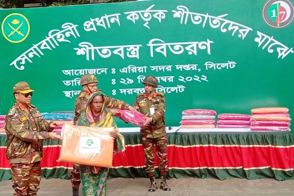 এ সময় সেনা প্রধান ১৭ পদাতিক ডিভিশনের ব্যবস্থাপনায় সিলেটের জৈন্তাপুর উপজেলার দরবস্ত ইউনিয়নের কালিজুরী এলাকায় ১১০০টি অসহায় ও দুঃস্থ পরিবারের মধ্যে শীতবস্ত্র বিতরণ করেন।