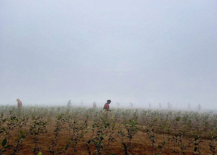 শীতবস্ত্রের অভাবে চা বাগান এলাকার শ্রমিকেরা সকালের দিকে গাছের পাতা, লাকড়ি কুড়িয়ে আগুন জ্বালিয়ে শীত নিবারণের চেষ্টা করেছেন।