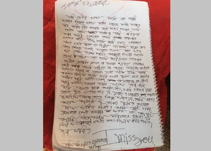 সুইসাইড নোটের একেবারে ওপরের দিকে ইংরেজিতে লেখা আছে, ‘আই লাভ ইউ মাই ফ্যামেলি’।