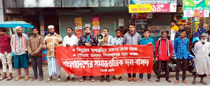 বিদ্যুতের মূল্যবৃদ্ধির চক্রান্ত বন্ধের দাবিতে বাংলাদেশর সমাজতান্ত্রিক দল-বাসদ সিলেট জেলা শাখার উদ্যোগে মানবব্ন্ধন ও বিক্ষোভ সমাবেশ অনুষ্টিত হয়। শনিবার (৭ জানুয়ারি) বিকাল ৫টায় আম্বরখানাস্থ দলীয় কার্যালয়ের সামনে বাসদ সিলেট জেলা শাখার সমন্বয়ক আবু জাফর এর সভাপতিত্বে ও জেলা সদস্য প্রণব জ্যোতি পাল এর সঞ্চালনায় বিক্ষোভ সমাবেশে অন্যান্যের মধ্যে উপস্থিত ছিলেন ও বক্তব্য রাখেন নাজিকুল ইসলাম রানা, মনজুর আহমদ, ইউসুফ আলী, জাহেদ আহমদ, শহিদ আলী, নুরুল ইসলাম, আকবর হোসেন, আনোয়ার হোসেন, মেহেদি আহমদ প্রমূখ।