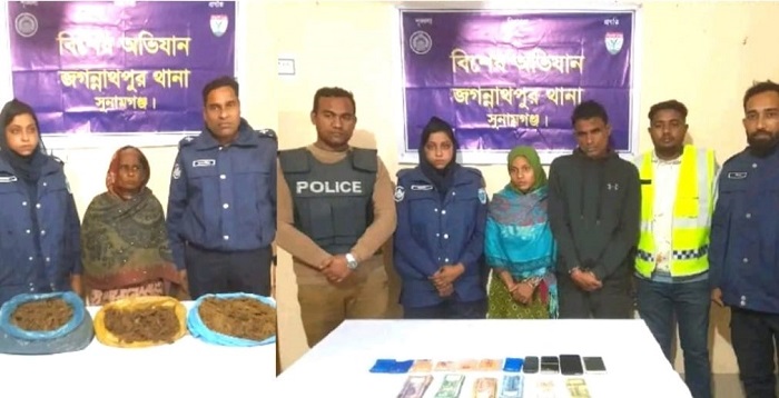 সুনামগঞ্জের জগন্নাথপুর থানা পুলিশের পৃথক বিশেষ অভিযানে বিপুলপরিমাণ গাঁজা ও ইয়াবা জব্দ করা হয়েছে। এতে জড়িত থাকা দুই নারীসহ তিনজনকে গ্রেপ্তার করে পুলিশ।