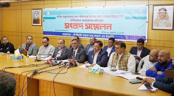 বাণিজ্য মন্ত্রণালয়ের মেলা পরিপত্র উপেক্ষা করে নিয়মবহির্ভূতভাবে সিলেটে একটি সংগঠনকে বাণিজ্য মেলা আয়োজনের অনুমতি দেওয়া হয়েছে বলে অভিযোগ করেছেন সিলেট চেম্বার অব কমার্স অ্যান্ড ইন্ডাস্ট্রির নেতারা। অথচ চেম্বার কর্তৃপক্ষ একাধিকবার জেলা প্রশাসনে আবেদন করেও মেলা আয়োজনের জন্য মাঠ বরাদ্দ পায়নি।