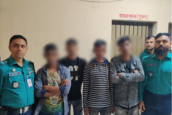 গ্রেপ্তারকৃতরা হলেন- মৌলভীবাজার জেলার রাজনগর থানার একামধু গ্রামের নুরুজ্জামানের ছেলে উজ্জল (২৭), সুনামগঞ্জ জেলার ছাতক থানার ঝিকলি গোবিন্দগঞ্জ গ্রামের মৃত আব্দুর নূরের ছেলে আলী নূর (২৬), হবিগঞ্জ জেলার বানিয়াচং থানার খাড়াউড়া গ্রামের হরমুজ আলীর ছেলে বুলবুল আহম্মদ (৩৩) ও সিলেট জেলার জৈন্তাপুর থানার ঠাকুরমাটি গ্রামের আখলুছ মিয়ার ছেলে সেলিম (২৫)।