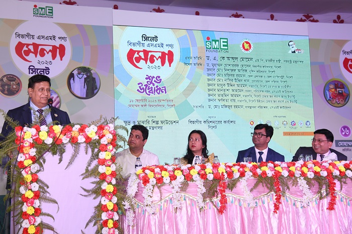 বৃহস্পতিবার (১৬ ফেব্রুয়ারি) সিলেটে মোহাম্মদ আলী জিমনেসিয়ামে ক্ষুদ্র ও মাঝারি শিল্প ফাউন্ডেশনের আয়োজনে এবং বিভাগীয় কমিশনারের কার্যালয়ের তত্বাবোধানে বিভাগীয় এসএমই পণ্য মেলা ২০২৩ উদ্বোধন অনুষ্ঠানে প্রধান অতিথির বক্তব্যে তিনি এসব কথা বলেন।