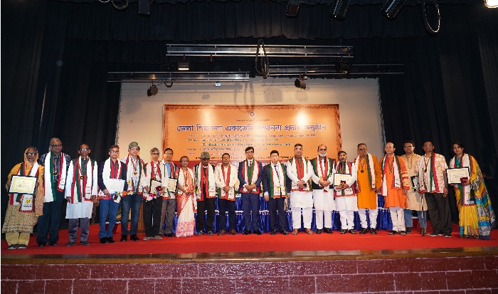 সম্মাননা প্রদান আয়োজনের শুরুতেই ‘আনন্দলোকে মঙ্গলালোকে বিরাজ সত্য সুন্দর’ গানের সঙ্গে নৃত্য পরিবেশন করেন একাডেমি ফর মণিপুরী কালচার এন্ড আর্টস-এর শিল্পীরা। অতিথিবৃন্দের সঙ্গে সম্মাননা পদক প্রাপ্ত গুণীশিল্পীগণের গ্রুপ ফটোসেশনের মধ্য দিয়ে আয়োজনটির সমাপ্তি ঘটে।