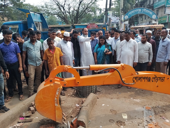 সিলেটের গোলাপগঞ্জে পথচারীদের নিরাপদ চলাচল, পৌর শহরকে যানজটমুক্ত করতে অবৈধ স্থাপনা উচ্ছেদ অভিযান পরিচালনা করা হয়েছে।