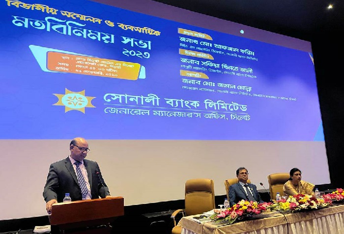 সোনালী ব্যাংক লিমিটেড, জেনারেল ম্যানেজার’স অফিসের আয়োজনে সিলেট অঞ্চলের জেনারেল ম্যানেজার মো. জামান মোল্লার সভাপতিত্বে এ মতবিনিময় সভায় বিশেষ অতিথি হিসেবে বক্তব্য রাখেন ব্যাংকটির ডিএমডি সঞ্চিয়া বিনতে আলী।