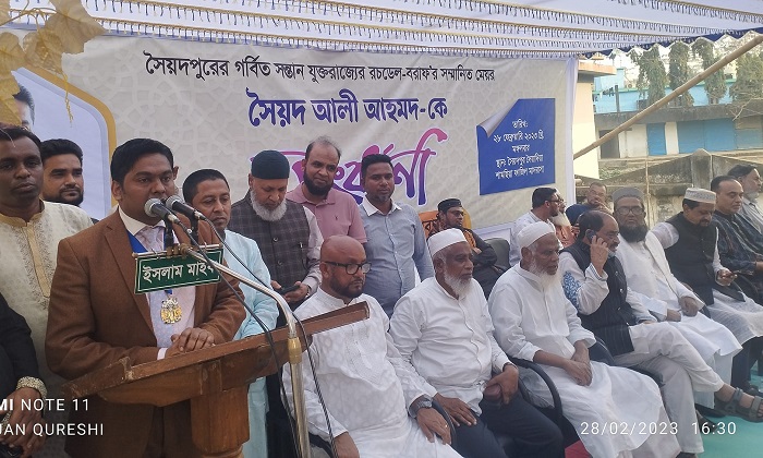 মঙ্গলবার (২৮ ফেব্রুয়ারি) দুপুরে সৈয়দপুর এলাকাবাসীর আয়োজনে সৈয়দপুর সৈয়দিয়া শামছিয়া ফাজিল মাদরাসা প্রাঙ্গণে এ সংবর্ধনা অনুষ্ঠিত হয়।