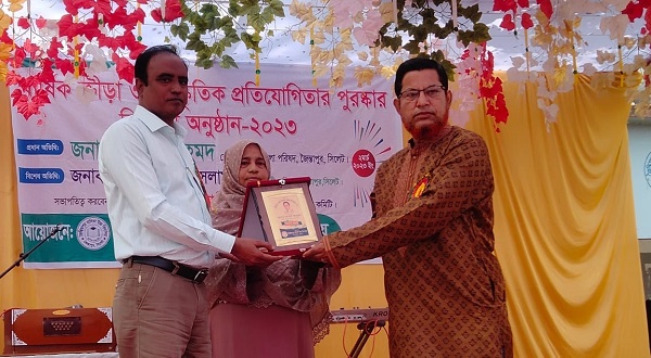 সমাপনী অনুষ্ঠানে বিভিন্ন খেলাধুলায় বিজয়ী শিক্ষার্থীদের মধ্যে পুরস্কার বিতরণ করেন প্রধান অতিথি উপজেলা পরিষদ চেয়ারম্যান কামাল আহমদ।